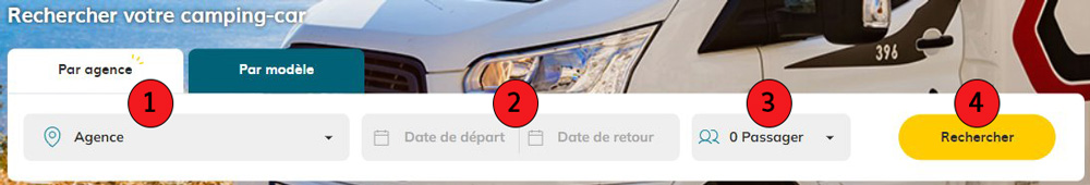 Une fois votre recherche effectuée, vous vous arriverez sur la page des résultats de votre recherche où vous trouverez les véhicules (camping-cars, vans et fourgons aménagés) disponibles pour vos critères (agence, dates, nombre de passagers).